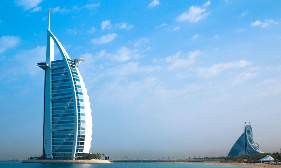 Considerado uno de los hoteles más lujosos del mundo, el Burj Al Arab se distingue por su infraestructura y detalles exclusivos. Entre ellos figuran fuentes en cascada, acuarios con más de 400 especies y una amplia variedad de materiales de alta gama.