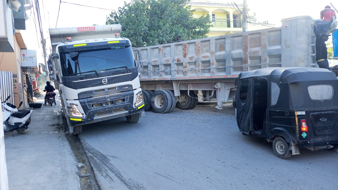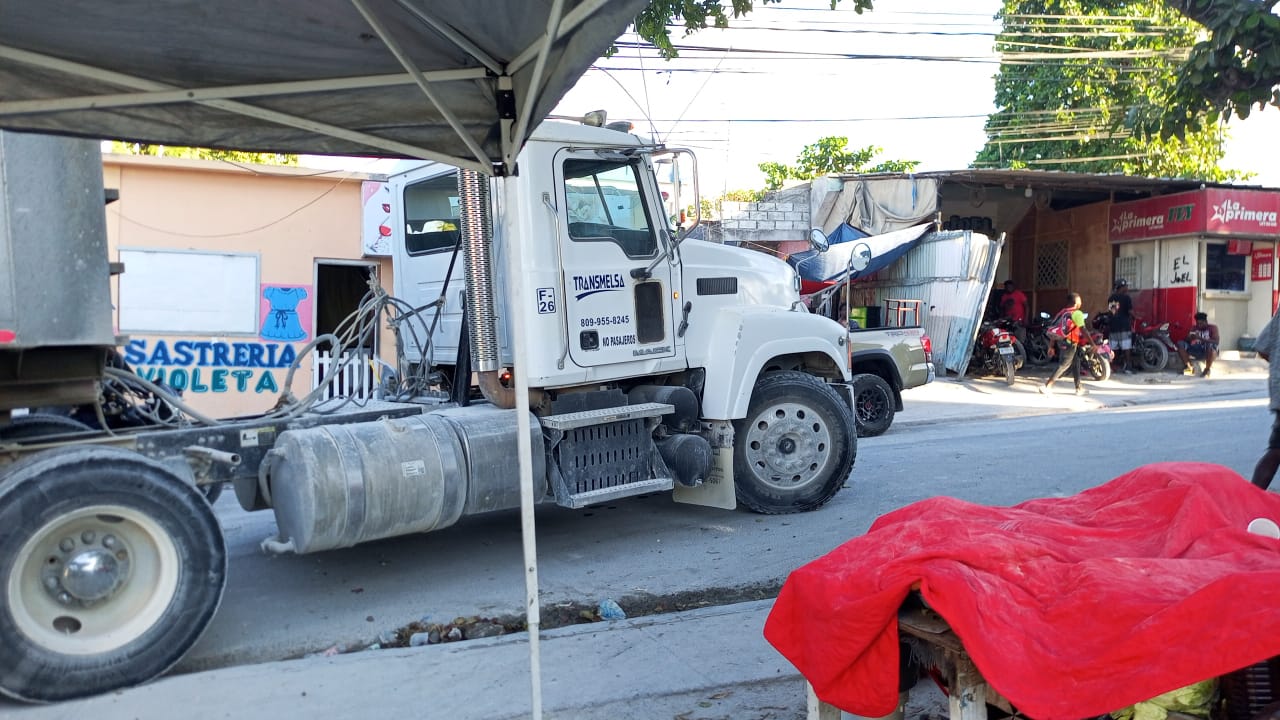 Friusa, Bávaro. – El paso de camiones pesados por la calle principal del Hoyo de Friusa, en Bávaro, continúa siendo un problema que afecta la seguridad de residentes, transeúntes y comerciantes de la zona, pese a que la circulación de los mismos debiera ser regulada.