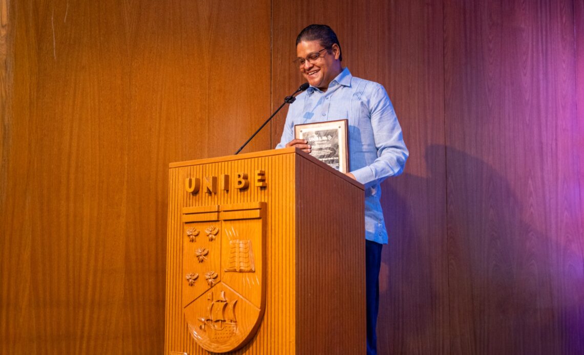 En esta edición, la institución durante la ceremonia, encabezada por la rectora de UNIBE, doctora Odile Camilo, entregó el Premio Quintiliano Jáquez a Méndez García, una distinción que exalta la entrega, responsabilidad y ejemplo cívico de personalidades que han dedicado su labor al fortalecimiento de la ciudadanía y la gestión integral de riesgos.